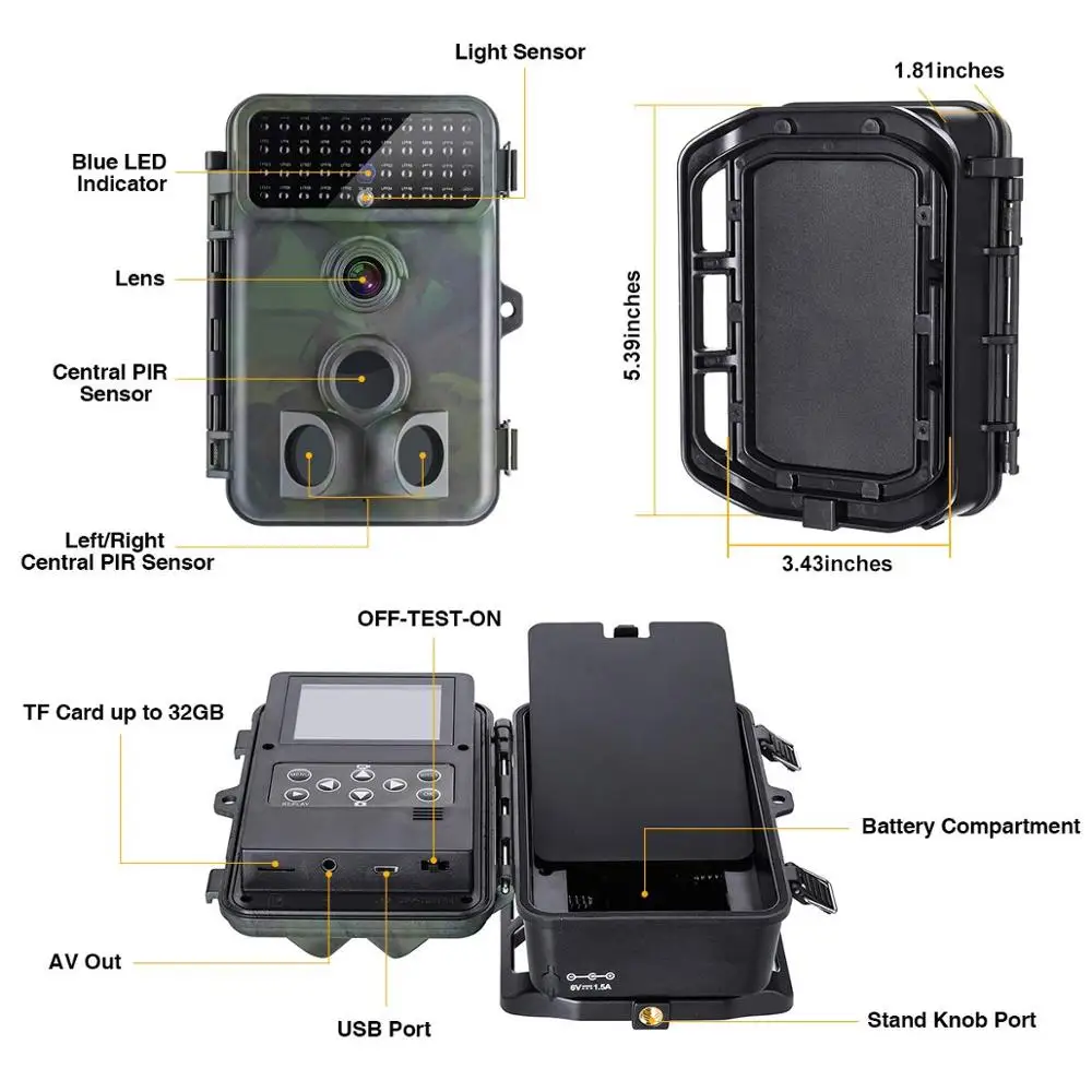 2.4''LCD Hunting Cameras Wildlife Trail Camera 16MP 125° Wild Surveillance Night Vision Animal Phot