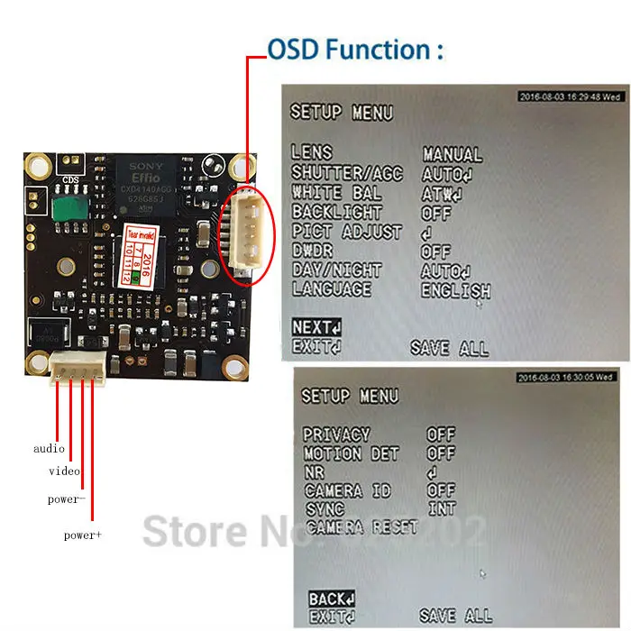ORIGINAL EFFIO-E 1/3 Sony CCD 700TVL Camera Chipset Module with Microphone and 3.6mm HD Lens
