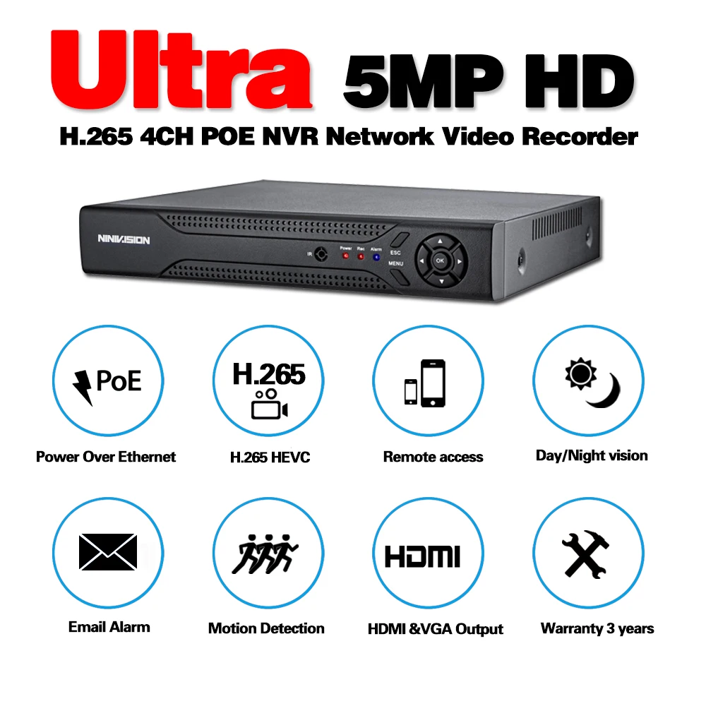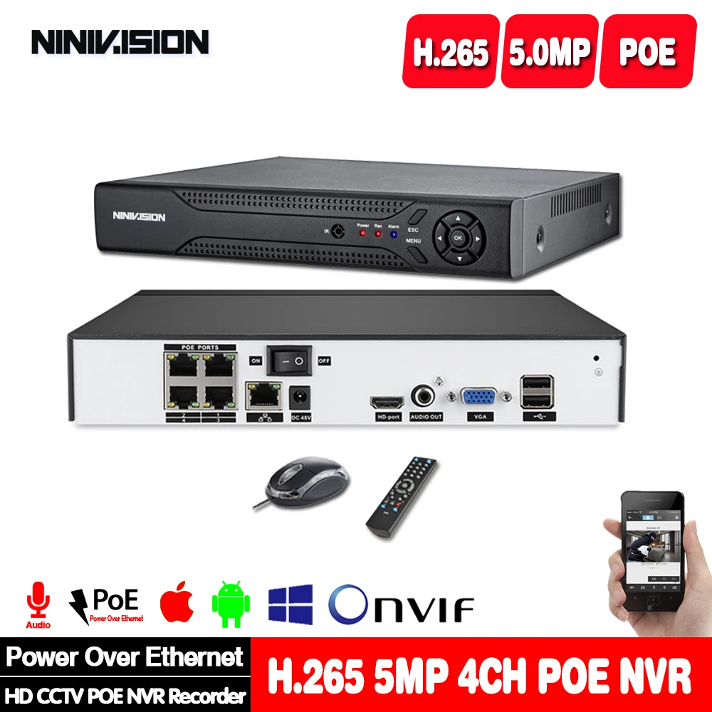 Best H.265 4CH 8CH POE NVR 48V 5MP 1080P HDMI Full HD Network Video Recorder CCTV System For POE Camera