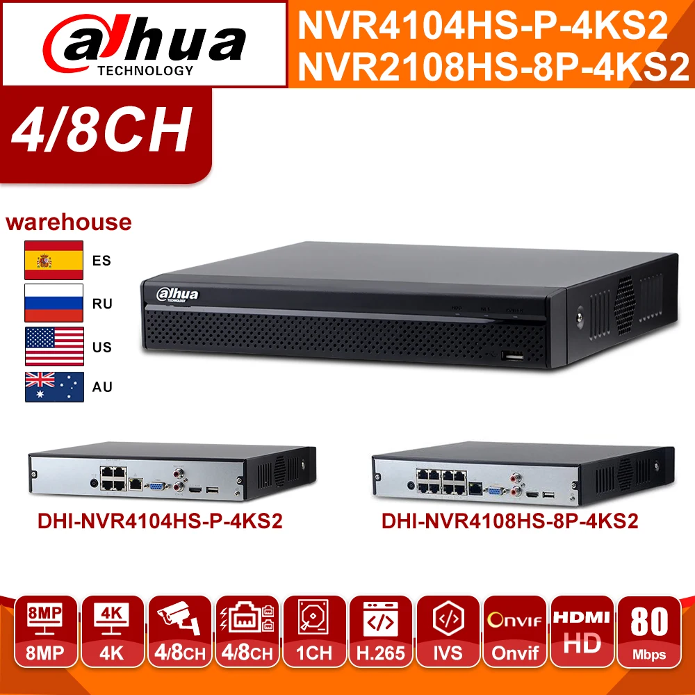 BEST Original Dahua NVR NVR4104HS-P-4KS2 NVR4108HS-8P-4KS2 4/8 CH NVR POE 4K Network Video Recorder with