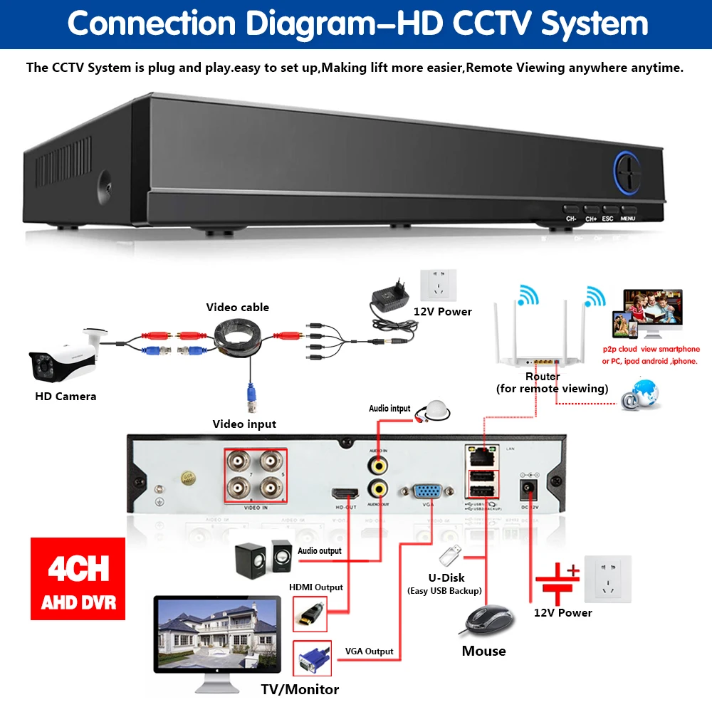 HIGH QUALITY 6 in 1 4CH 8CH 5MP 4MP 1080P AHD DVR Surveillance Security CCTV Recorder 3G WIFI Hybrid DVR NVR For