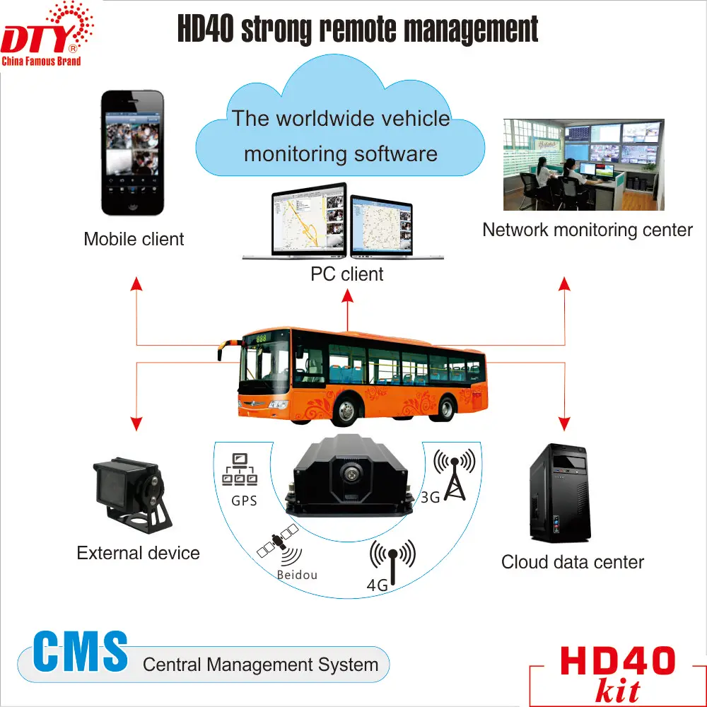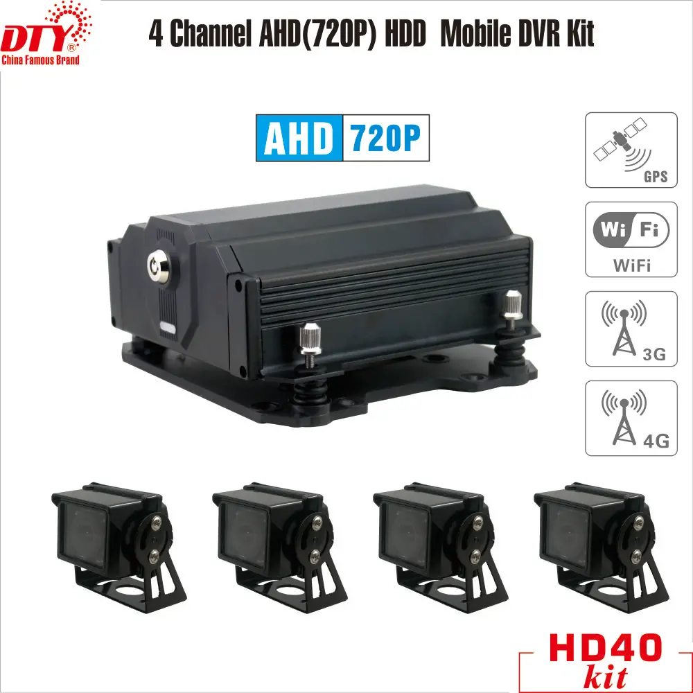DTY Mobile HDD 4 CH Car DVR Camera System with free cms software 3G WIFI GPS Optional