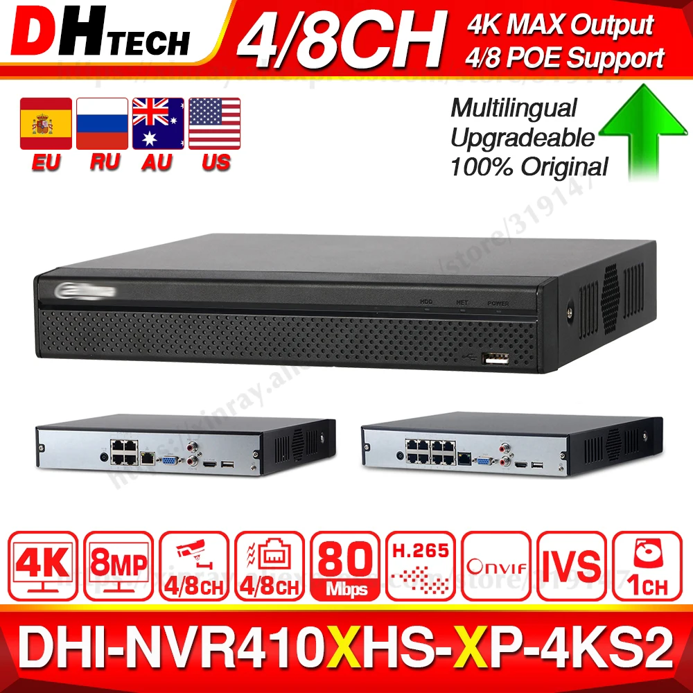 HIGH QUALITY Dahua Original NVR4104HS-P-4KS2 NVR4108HS-8P-4KS2 4/8 CH IVS NVR 1U PoE Network Video Recorder Full