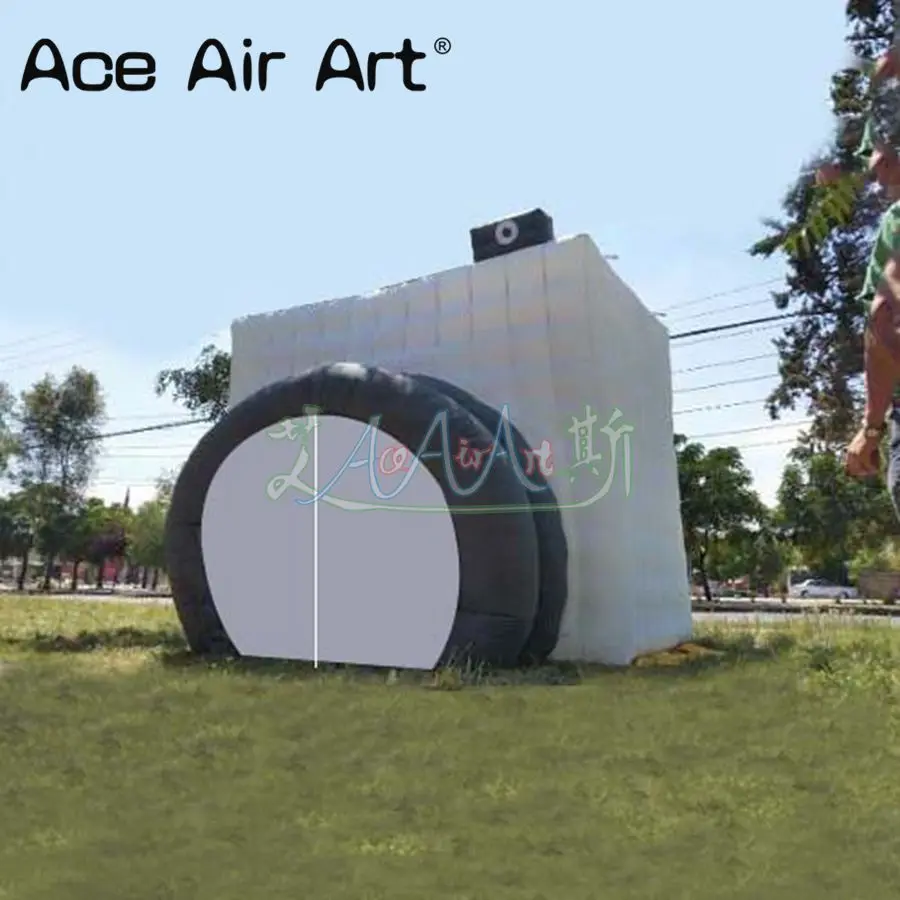 Review Top Novelty camera shaped inflatable photo booth enclosure with black lens doors and zipper curtainsfre