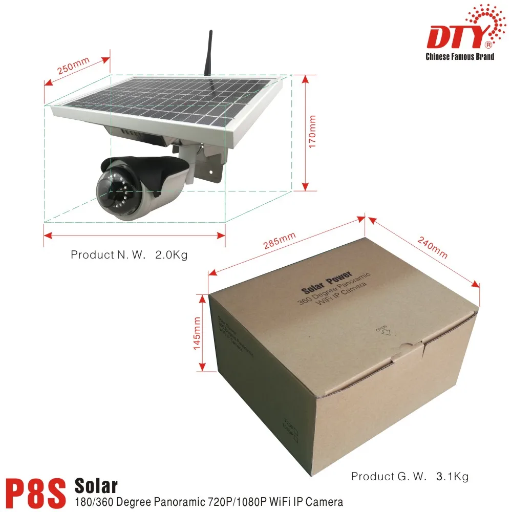 DTY 1080P Panoramic Battery Powered CCTV wifi Camera Night Vision Wireless solar Camera P8S-1
