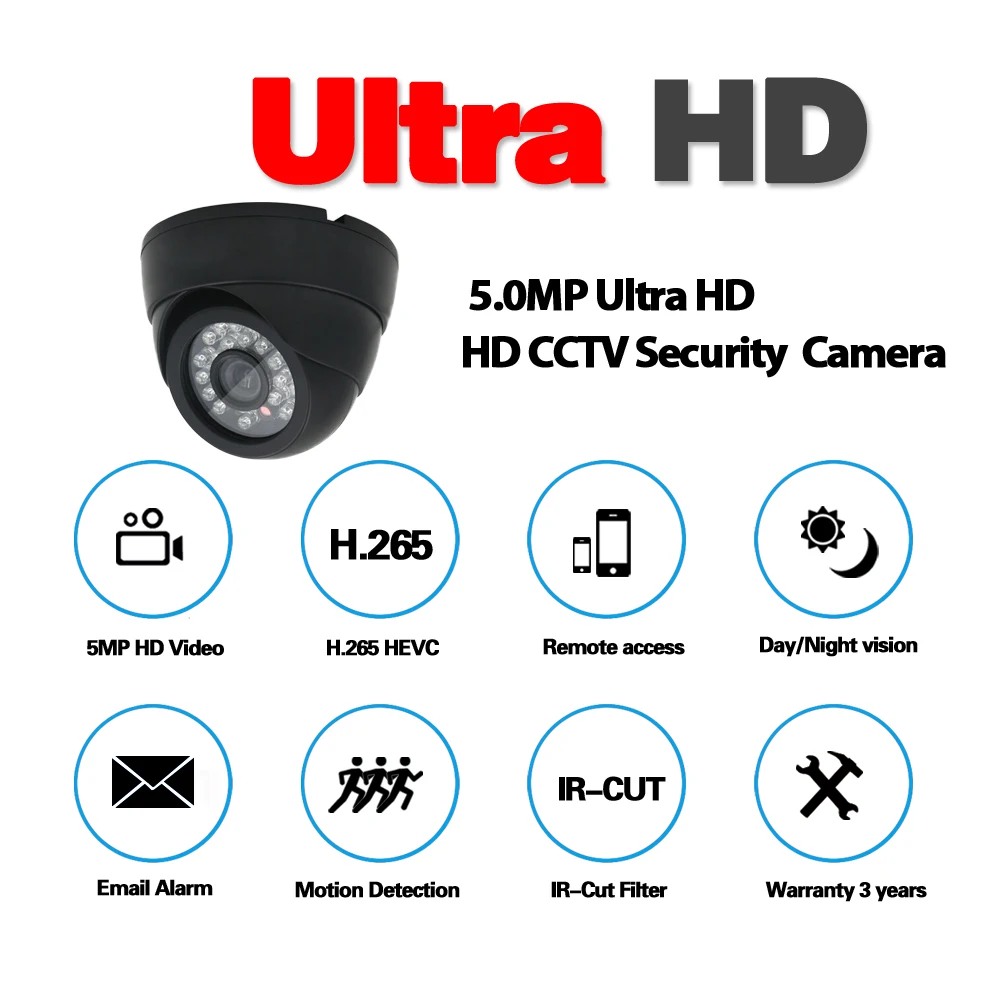 Review Super 5MP AHD Black Camera 24pcs IR LED 2560(H)*1920(V) With IR CUT Filter Day & Night Surveillance